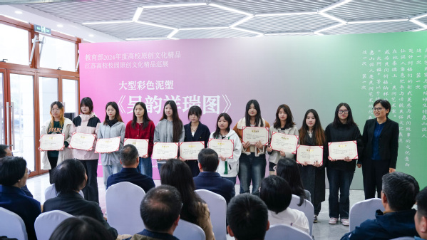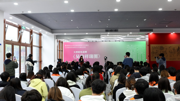 江苏省教育厅一级巡视员徐子敏在讲话中指出,开展江苏高校校园原创文化精品巡展巡演是深入学习贯彻习近平文化思想,推动我省高校深入落实“时代新人铸魂工程”的重要举措,要引导广大师生大力弘扬中华美育精神,持续增强文化自信,厚植爱国主义情怀,开创大中小学美育与思政教育融合的新局面。他希望职业教育发挥艺术设计制作方面的特长,创作更多像《吴韵祥瑞图》这样优秀的艺术作品,把中华优秀传统文化和美好故事推向全世界。
