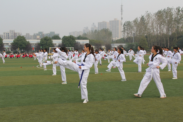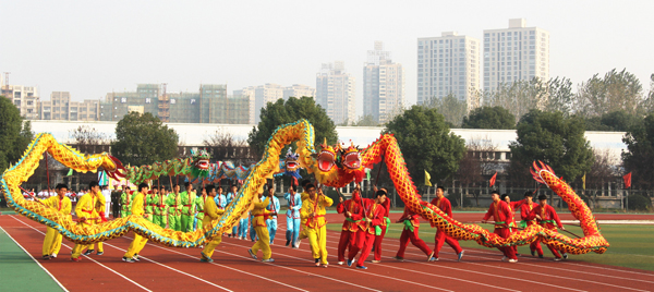 徐亚奎老师、施军伟同学相继代表裁判员和运动员宣誓,校党委书记朱爱胜宣布运动会正式开幕。随后,各院系学生方队参加了广播操比赛;舞龙、太极拳、创新跆拳道等表演一次次将现场气氛推向高潮。