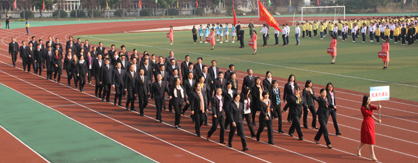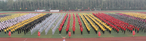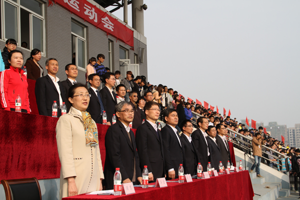 6日上午的开幕式上,校领导朱爱胜、龚方红、戴勇、谈向群、华坚、冯渊、顾京、周桂瑾和数千名师生聚集在田径场。在金秋的晨光中,各代表队以饱满的精神状态通过主席台,别出心裁的队形编排和风格变换吸引了看台上观众的眼球;首次亮相开幕式的教职工方队也以充满青春气息的表现博得满堂喝彩。
