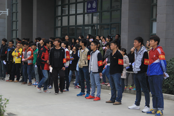 下午13时55分,随着警报声响起,2014级学生在第一时间赶到现场的宿管员、保安及护校队员的指引下,安全、有序、迅速地到达指定地点,随后清点人数。整个过程仅用时三分钟,没有发生拥堵、推挤和跌倒等现象。疏散演练结束后,消防干警随即进行了大楼灭火演练。