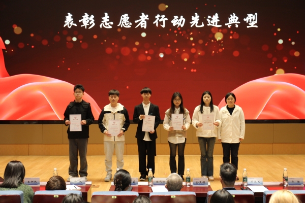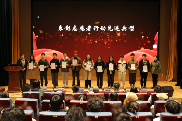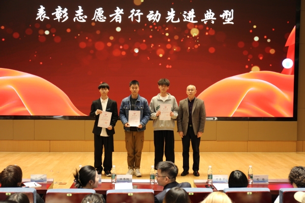 活动现场表彰了2023年度学校优秀志愿者,优秀志愿服务项目和优秀志愿组织;财经学院郑文彧老师和向日葵义工站李沛泽同学做了交流发言;学校团委与无锡地铁集团,无锡市人民医院,无锡市残联,江苏省击剑协会进行志愿服务共建签约。