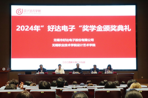 10月29日下午,设计艺术学院在厚德楼一楼报告厅举行2024年度“好达电子”奖学金颁奖仪式。校党委书记龚方红、无锡市好达电子股份有限公司人力资源总监冯卓、学生工作处处长徐悦、设计艺术学院相关负责人、获奖学生以及各年级学生代表出席颁奖典礼。