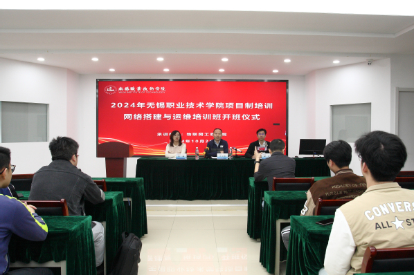 10月26日,由无锡市人力资源和社会保障局指导、无锡市高技能人才公共实训服务中心主办、我校物联网工程学院承办的“无锡市职业技能项目制培训——网络搭建与运维培训班”在图C-401拉开帷幕,本次培训吸引了来自无锡市20家企业的30名一线技术员工积极参与。我校继续教育与培训部主任饶成明、物联网工程学院党总支书记谢欢、副书记朱琳等出席开班仪式。