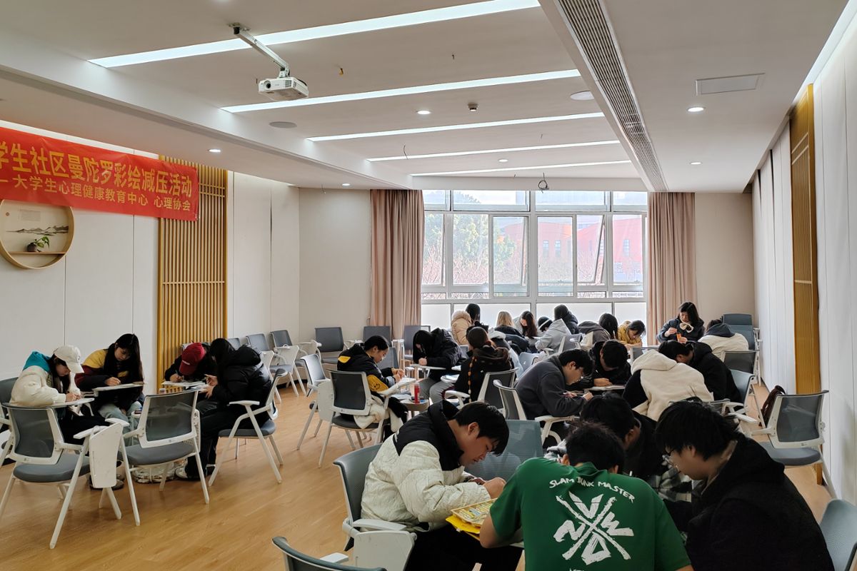 12月24日下午,一场别开生面的曼陀罗减压活动在心理中心103团辅室温馨举办,活动由学校大学生心理健康教育中心主办,心理协会协办,吸引了全校50余名寻求心灵慰藉与压力释放的同学踊跃参与。