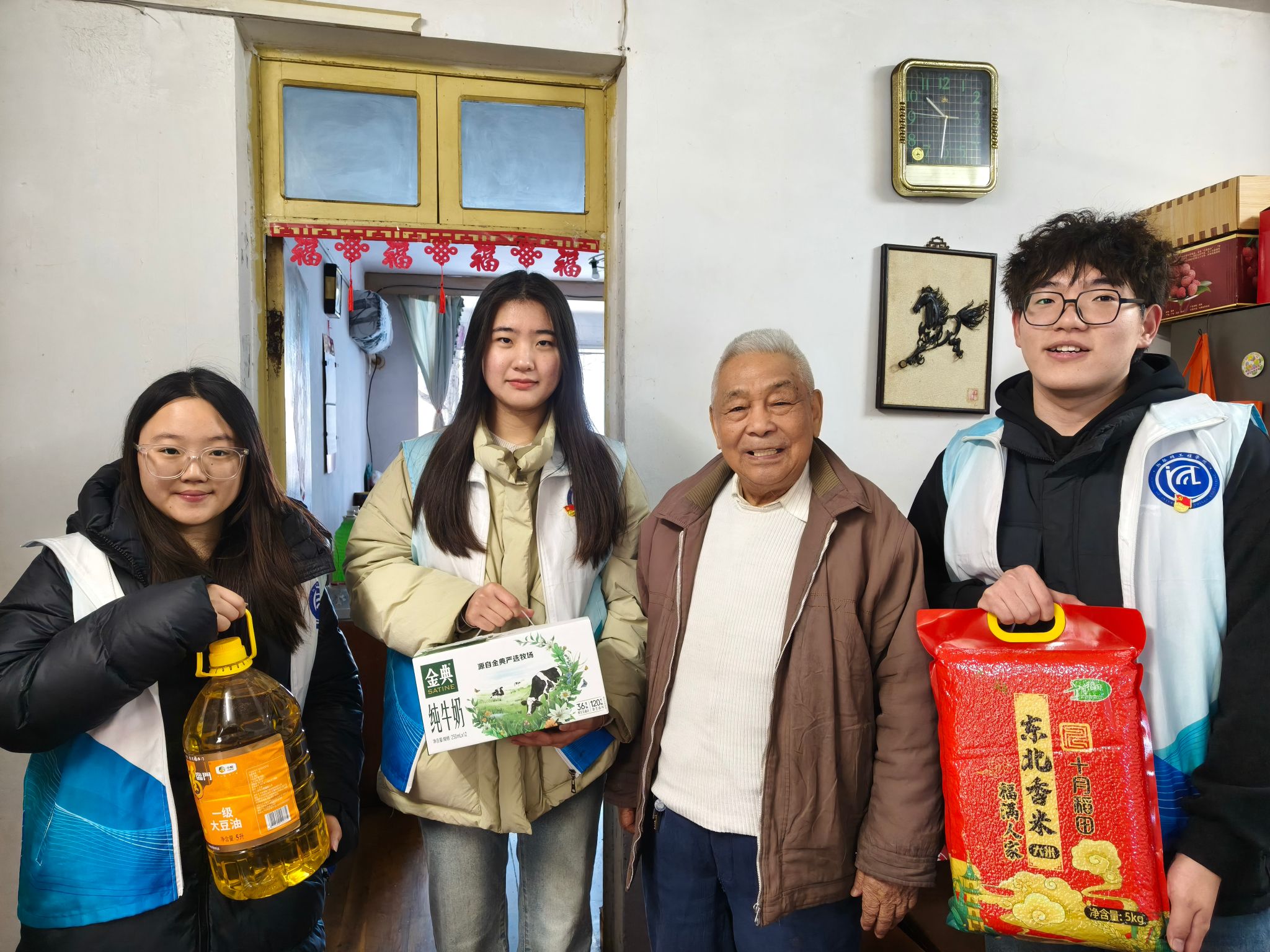 在交流环节,老人们围坐在一起,热情地分享使用感受并积极建言献策。78岁的赵阿姨提议“增加方言识别功能”;退休教师周爷爷则提出增加“智能药盒语音提醒方案”。志愿者们不仅在现场提供帮助,还带着关怀物资走进空巢老人家中,为他们送去了满满的关怀与温暖。