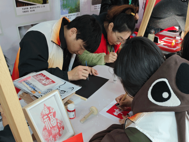 活动特别融入传统文化元素,开设“非遗匠心”手工体验区。在雕版印刷体验区,志愿者带领社区居民体验“福”字拓印和烧箔画,让非遗技艺与雷锋精神交相辉映。社区居民在志愿者的指导下,完成一幅幅生动的作品,感受传统文化的魅力。“没想到学雷锋活动还能体验非遗,既有趣又有意义!”一位居民赞叹道。