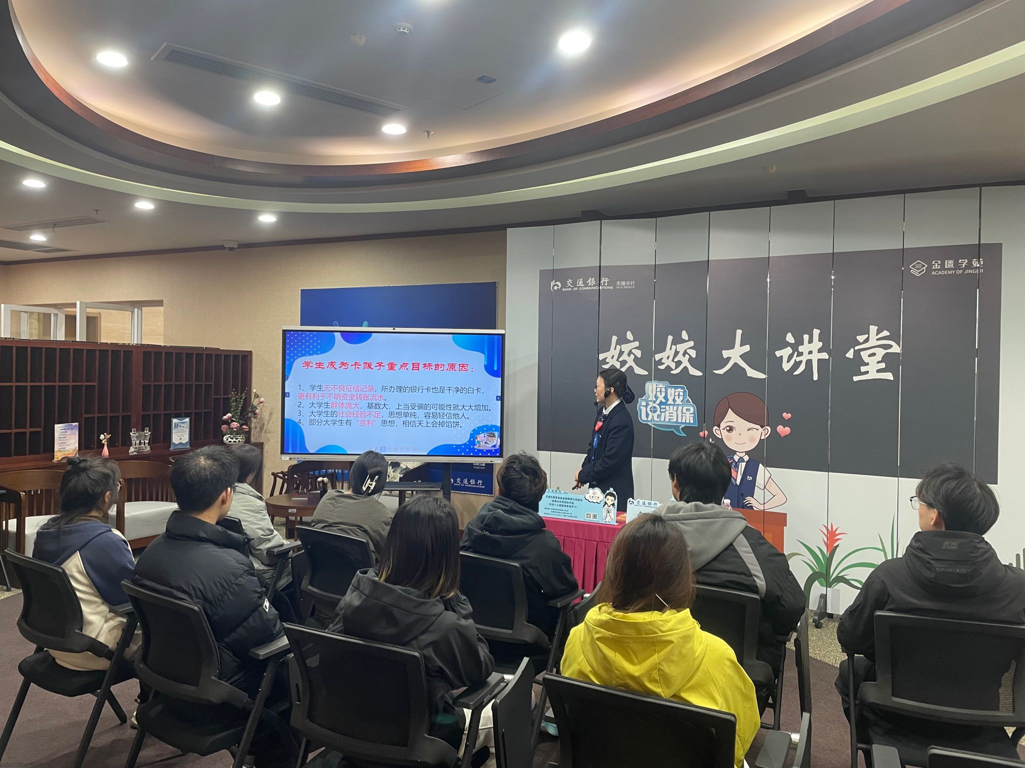 活动中,银行工作人员带领同学们依次了解营业厅相关智能设备、日常营业的各个岗位,并参观了无锡首家金融普法教育示范基地“金匮学苑”,现场介绍了交行的党建文化、企业文化和消费者权益保护知识。在3·15消费者权益保护日到来之际,银行工作人员针对当下线上支付普及现状和电信诈骗频发等问题,结合实际案例,进行了反诈宣传及普法教育。