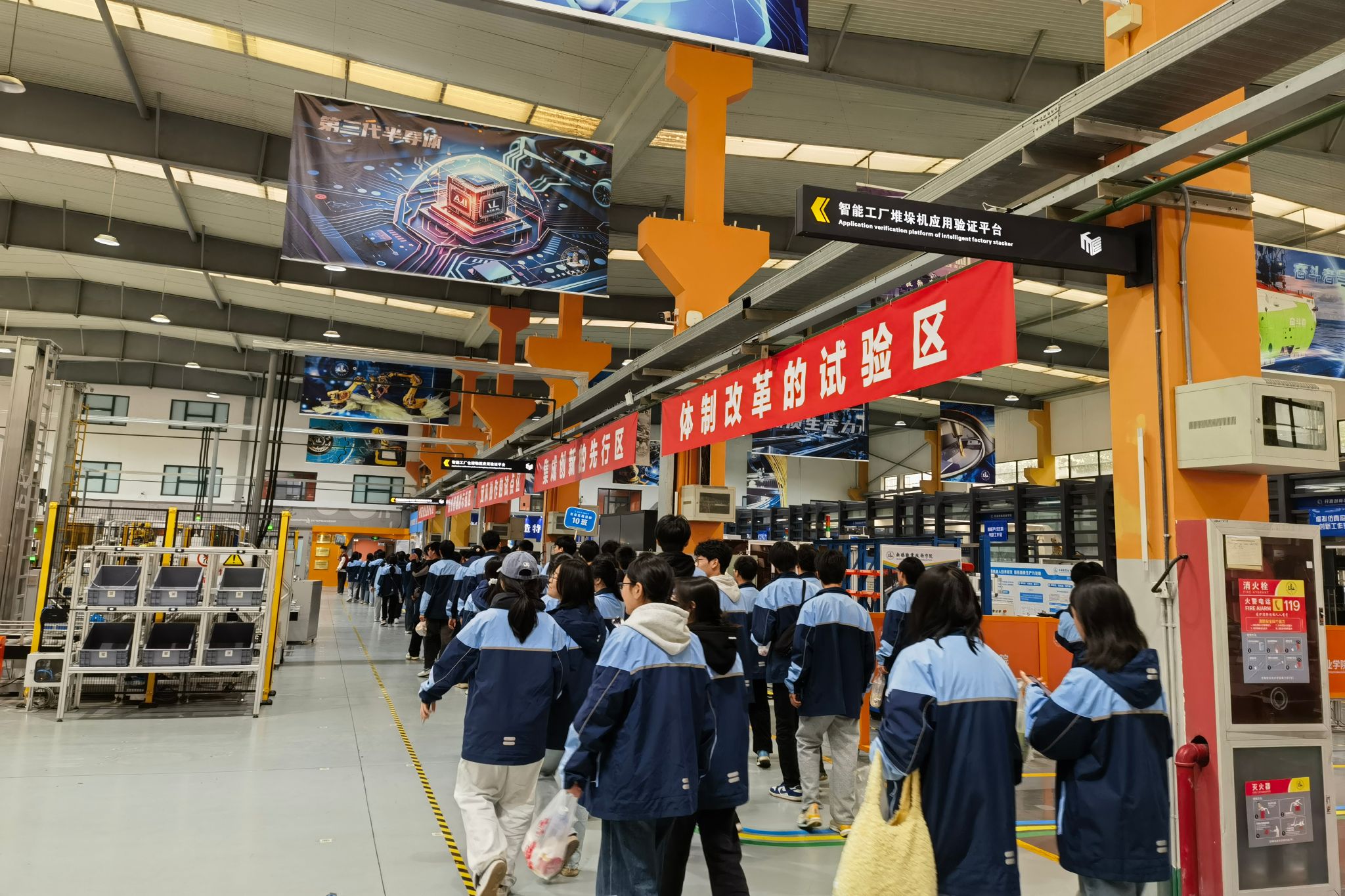 专题讲座围绕智能制造行业趋势与职业能力要求,鼓励学生深入理解“技能强国”发展目标。在智能制造工程中心,学生们近距离观摩了自动化生产线、机械臂精准作业及机器人对抗赛演示,展示了现代工业生产的智能化转型发展和应用。学生们表示,此行不仅拓宽了职业视野,更激发了投身智能制造领域的热情。