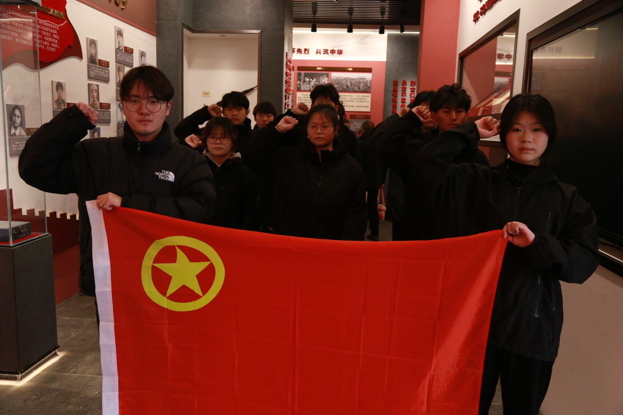随后,学生有序参观了革命烈士纪念馆,透过革命先烈们的英勇事迹,实境学习了先烈们为国家独立、民族解放,不惜抛头颅、洒热血的大无畏精神。锡南地区是无锡武装斗争的“前线”,从1938年3月到1945年8月,抗日烽火持续7年之久,一张张照片、一件件展品,再现了锡南军民抗日反“清乡”、支援渡江战役的壮烈篇章。最后,共青团员们整齐列队重温入团誓词,激昂的声音回荡在陵园上空,彰显着传承先辈精神的坚定信念。