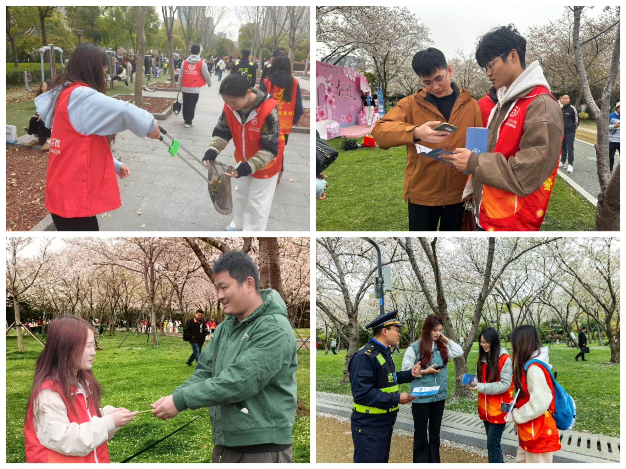 春日和煦日光暖,每年的樱花季,是城市管理人员最忙碌的时候,为保障市民游客舒心游园赏樱,3月28日至30日,设计艺术学院师生党员、团员、入党积极分子和“萤火微光”团队在内的48名志愿者分批来到金匮公园,携手经开区执法监督局联合开展“志愿同行,‘樱’你而美”景区环境维护行动。
