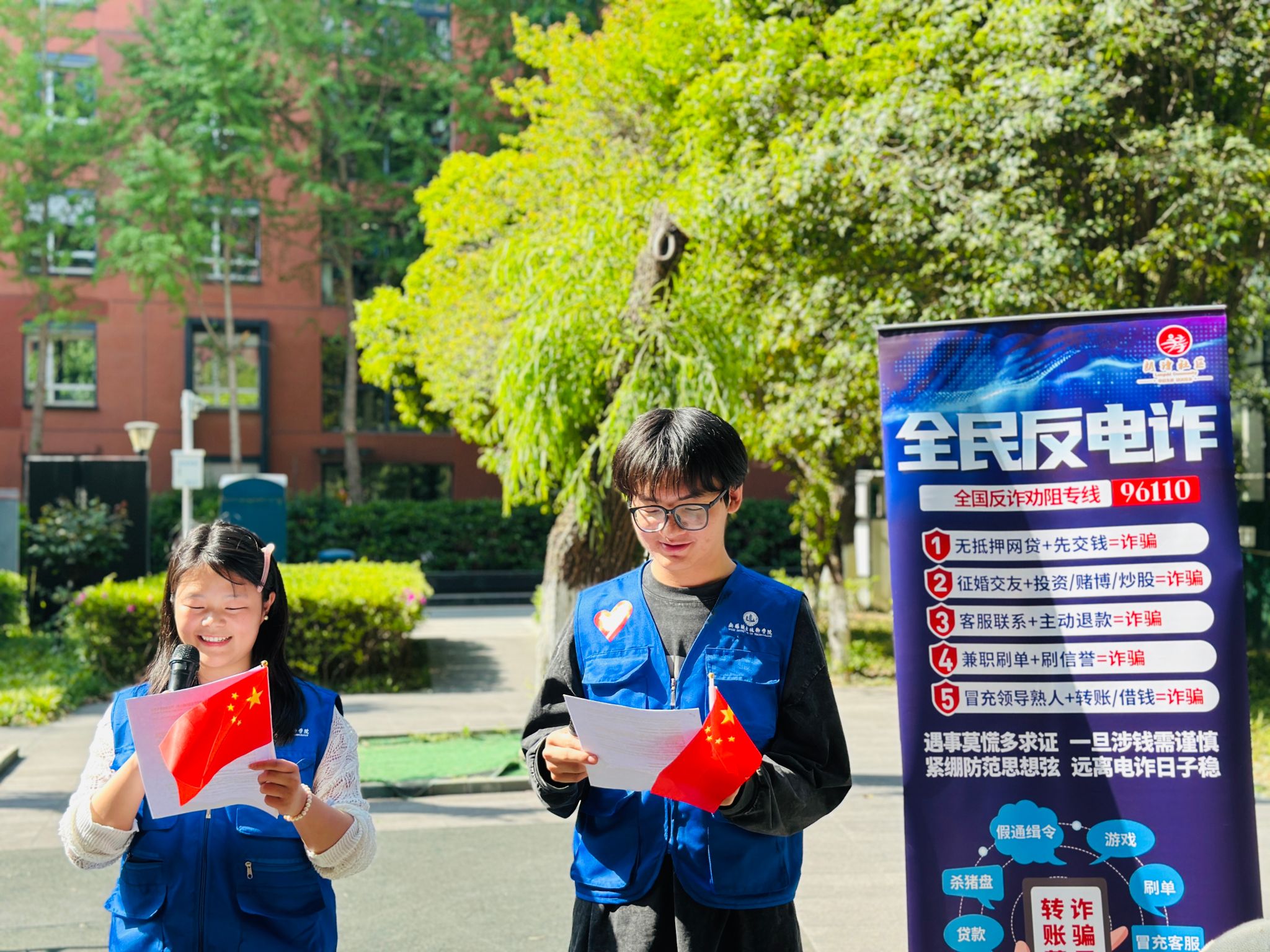 聚焦群众关切,控制工程学院学生党员志愿者团队现场演绎反诈情景剧,通过“刷单返利骗局”还原、AI换脸诈骗技术解析等,揭露新型犯罪手段,并设计“诈骗套路快问快答”互动,为30余名居民答疑解惑。“原来陌生链接真不能随便点!”社区居民王阿姨连连点赞。