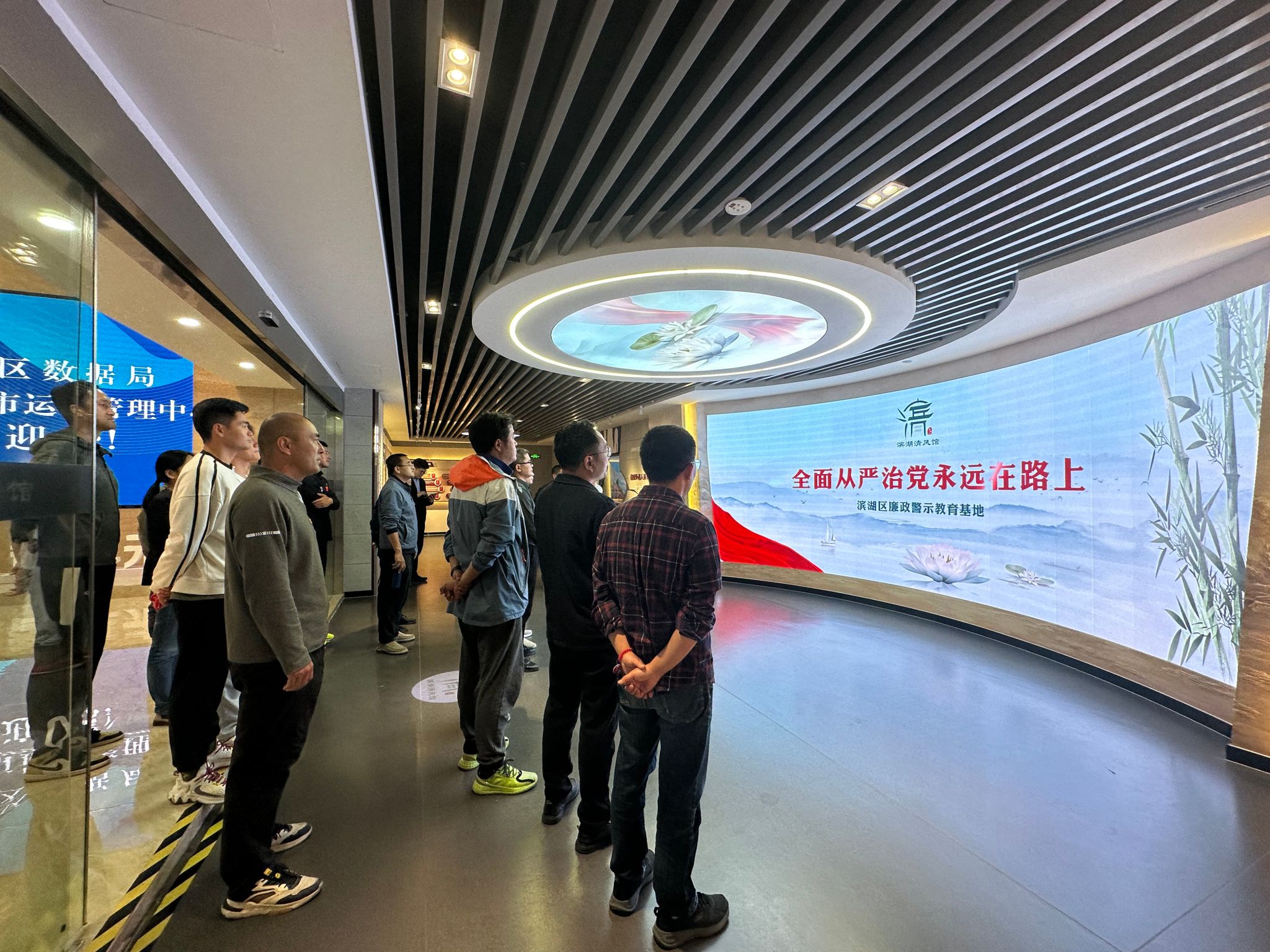 在滨湖清风馆,大家参观了“新时代全面从严治党”“纪检监察新举措”“典案镜鉴鸣警钟”“声声忏悔字字泪”“继往开来铭初心”“清风滨湖扬正气”六个篇章,听取了反腐历程、纪法条规、典型案例、警示忏悔以及时代楷模、古代先贤先进事迹等介绍,在案件重现、情景互动、场景还原中,通过身边事教育身边人,达到正面引导和反面警示相结合的教育目的。