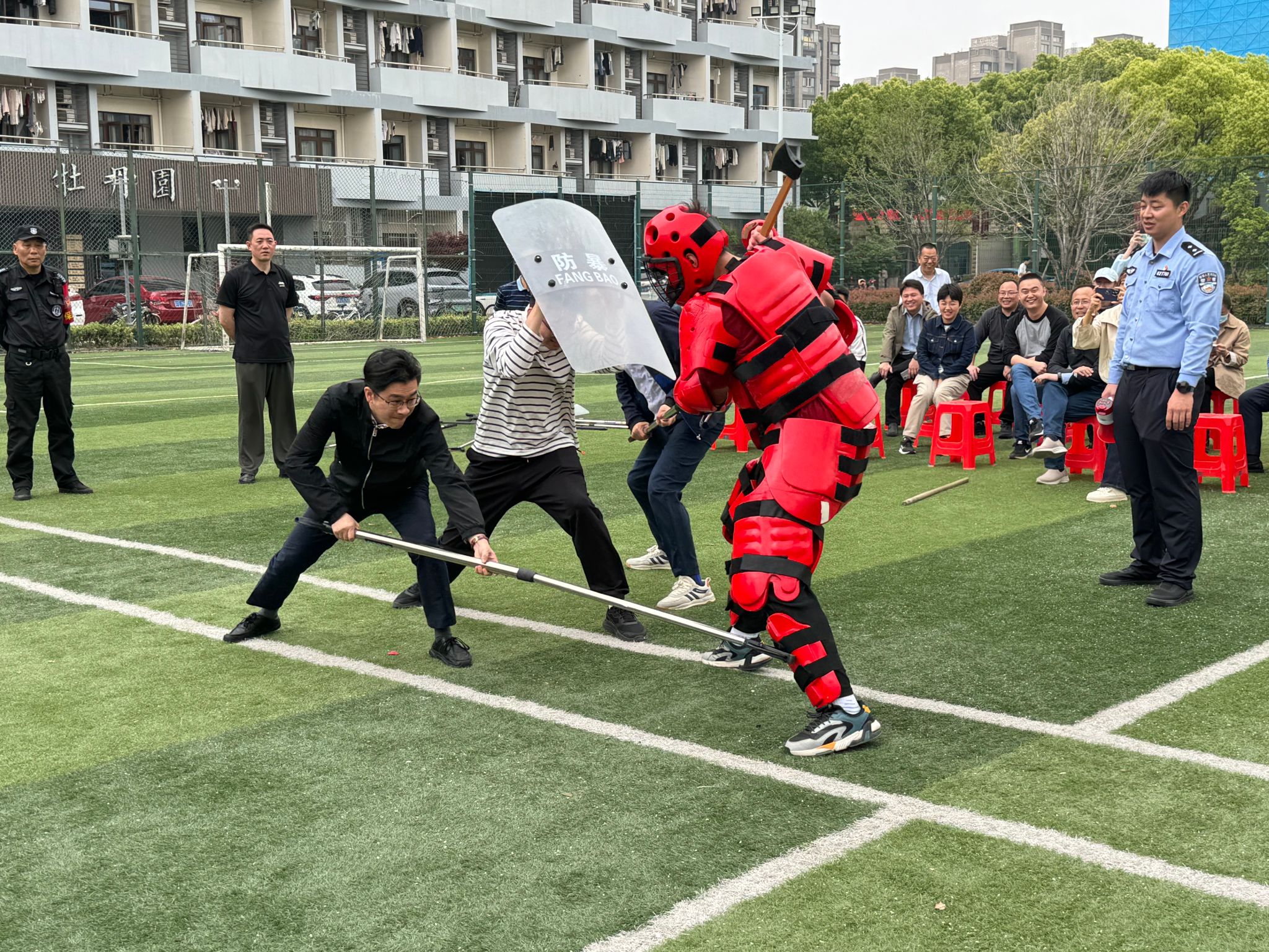 随后,演练模拟了“可疑人员持械对峙”突发事件,参训人员分组开展实战。每个单元按照“警戒、压制、控制”分工开展行动,盾牌手正面防御吸引注意,防暴叉手侧翼包抄压制。张绪韬现场纠正器械握持角度、战术走位间距等细节。通过反复演练,组员们的配合默契度和应急处置能力得到显著提升。
