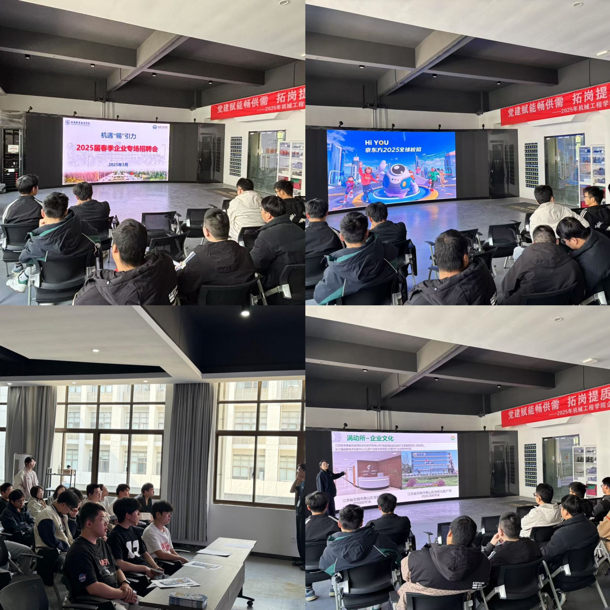 为切实助力2025届毕业生精准就业,搭建高效的人才供需桥梁,为地方产业升级输送适配人才,机械学院开展了以“机遇‘锡’引力”为主题的2025届春季企业专场宣讲招聘会。从3月4日至4月8日,每周二下午,在工业中心S208,20余家优质企业带岗进校园,吸引了700余名机械学子踊跃参与。