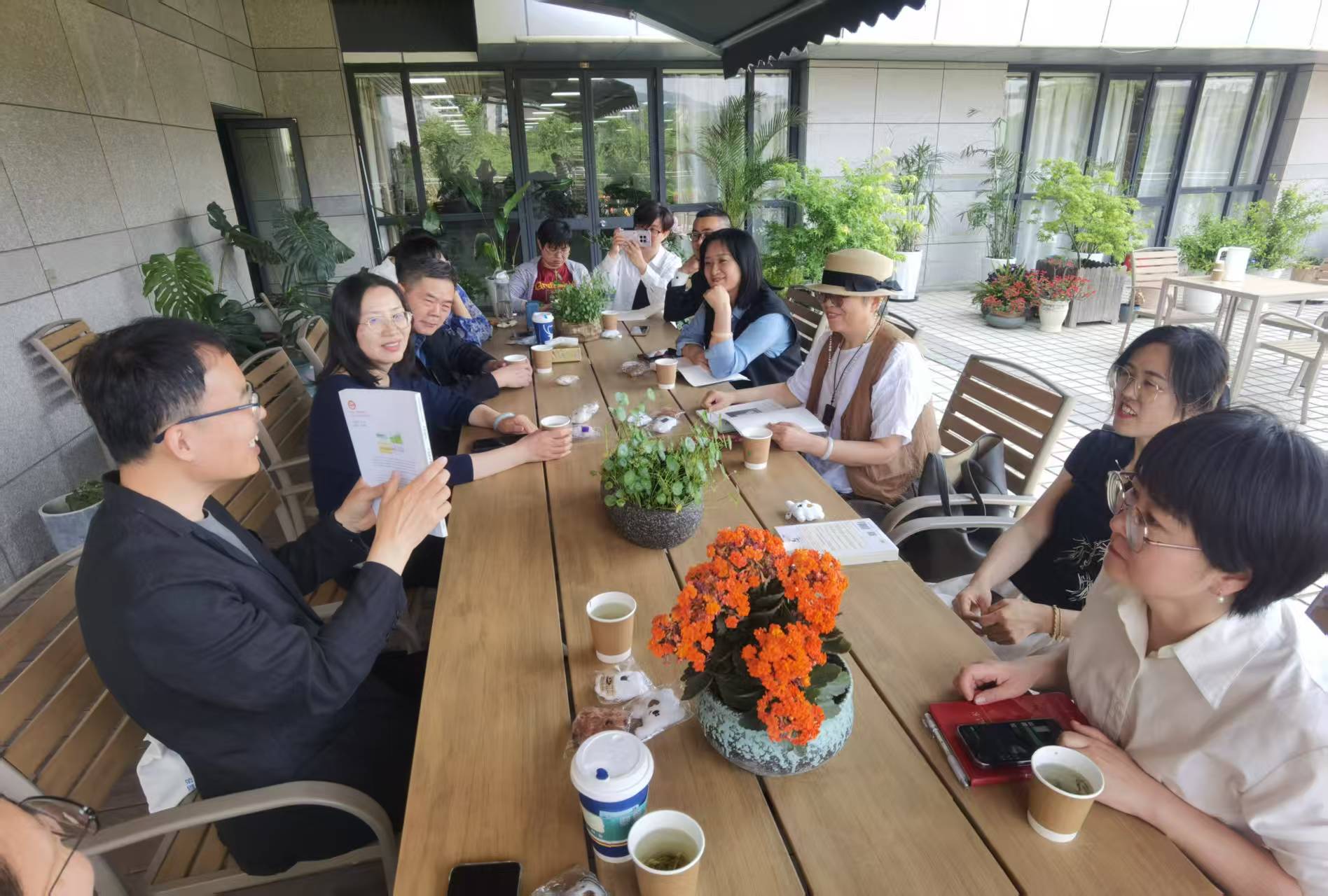 活动现场氛围轻松愉悦,老师们热情参与讨论,纷纷积极交流读书心得与生活感悟。惜花园中的繁花似锦与现场的热烈气氛相得益彰,共同构成了一幅美好的画面。