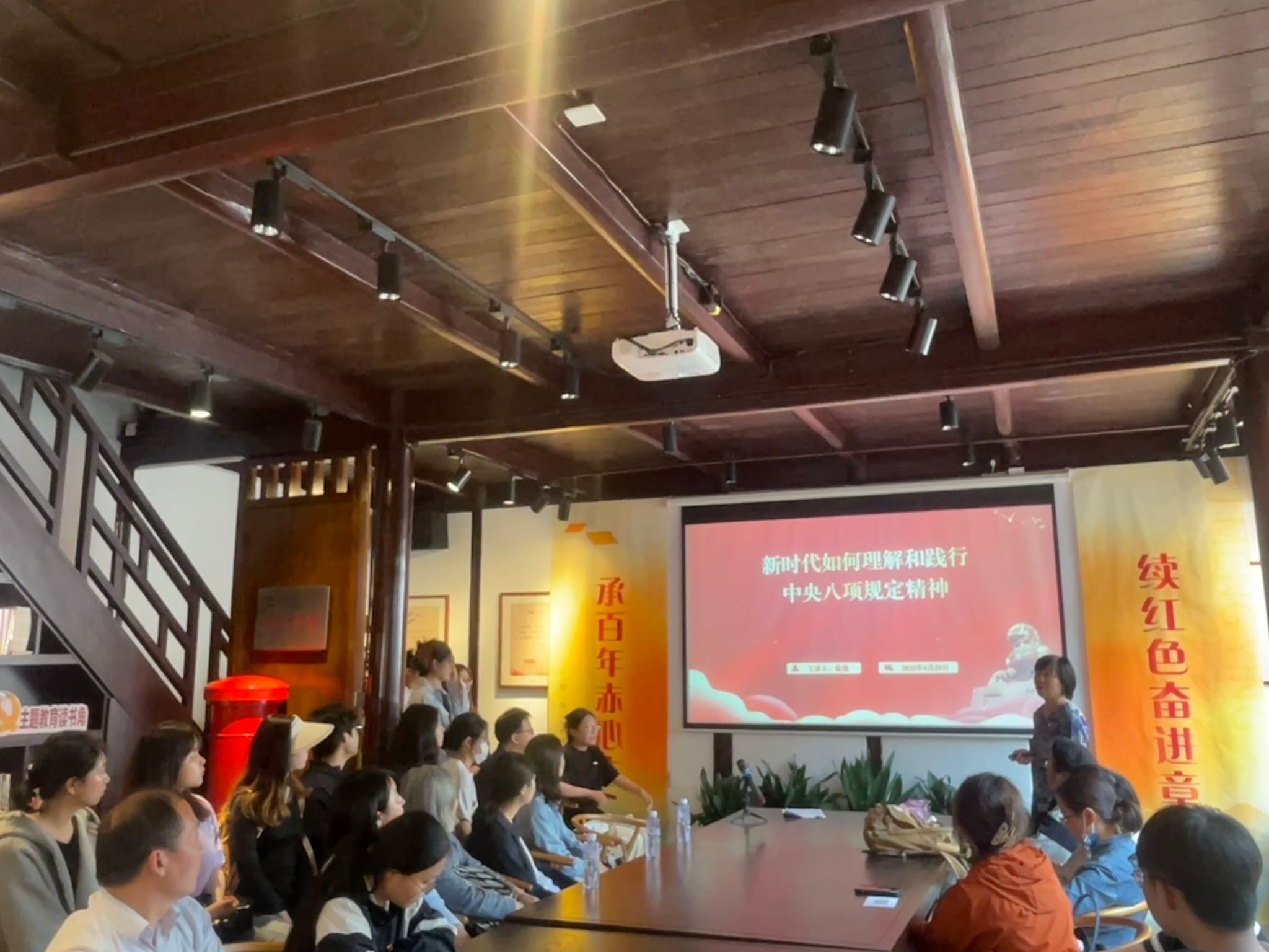 学思践悟,慎终如始。在学习教育环节,财经学院党总支书记带头讲党课,以《新时代如何理解和践行中央八项规定精神》为题,为全体党员讲授了一堂生动深刻的廉政教育课。从习近平总书记关于中央八项规定的重要讲话谈起,系统解读了新时代下作风建设的新内涵、新要求,结合典型案例以案说纪、以案说德、以案说责,引导党员干部不断增强纪律意识、规矩意识,自觉抵制“四风”问题,真正把中央八项规定精神内化于心、外化于行。