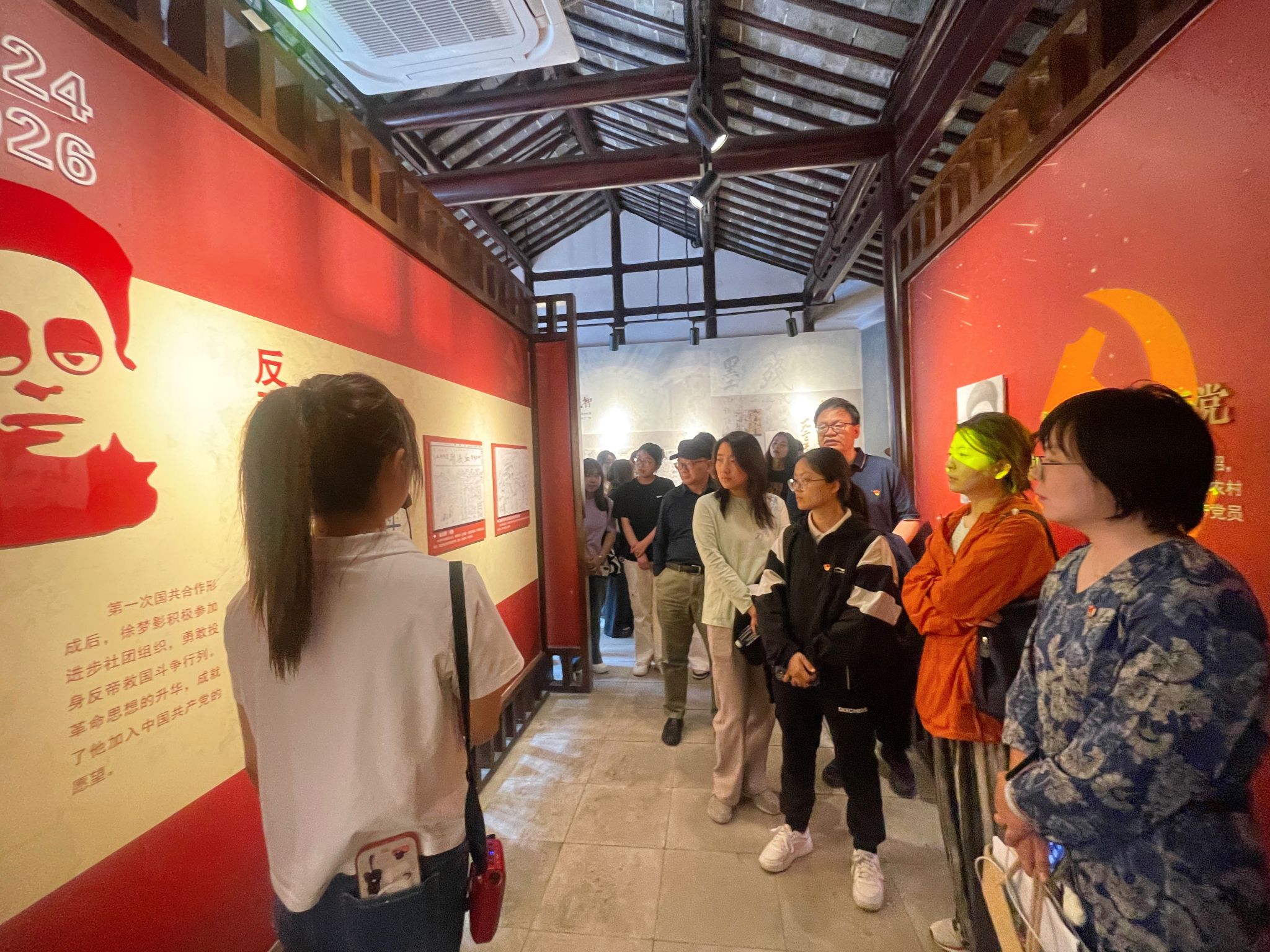 初心如磐不改,使命如炬长明。在徐梦影故居,全体党员沉浸式感受这位呐喊着“愿化狂潮涤浊流”革命先辈的爱国壮举。白墙青黛、斑驳砖瓦、泛黄家书、褪色长衫、老旧书桌……在讲解员的引导下,我们似乎看到了徐梦影挑灯夜读、开办夜校、投身革命的峥嵘岁月,简朴的陈设彰显其淡泊名利、廉洁自守的人格,也让广大党员深切体会到了作风建设永远在路上的重要意义。