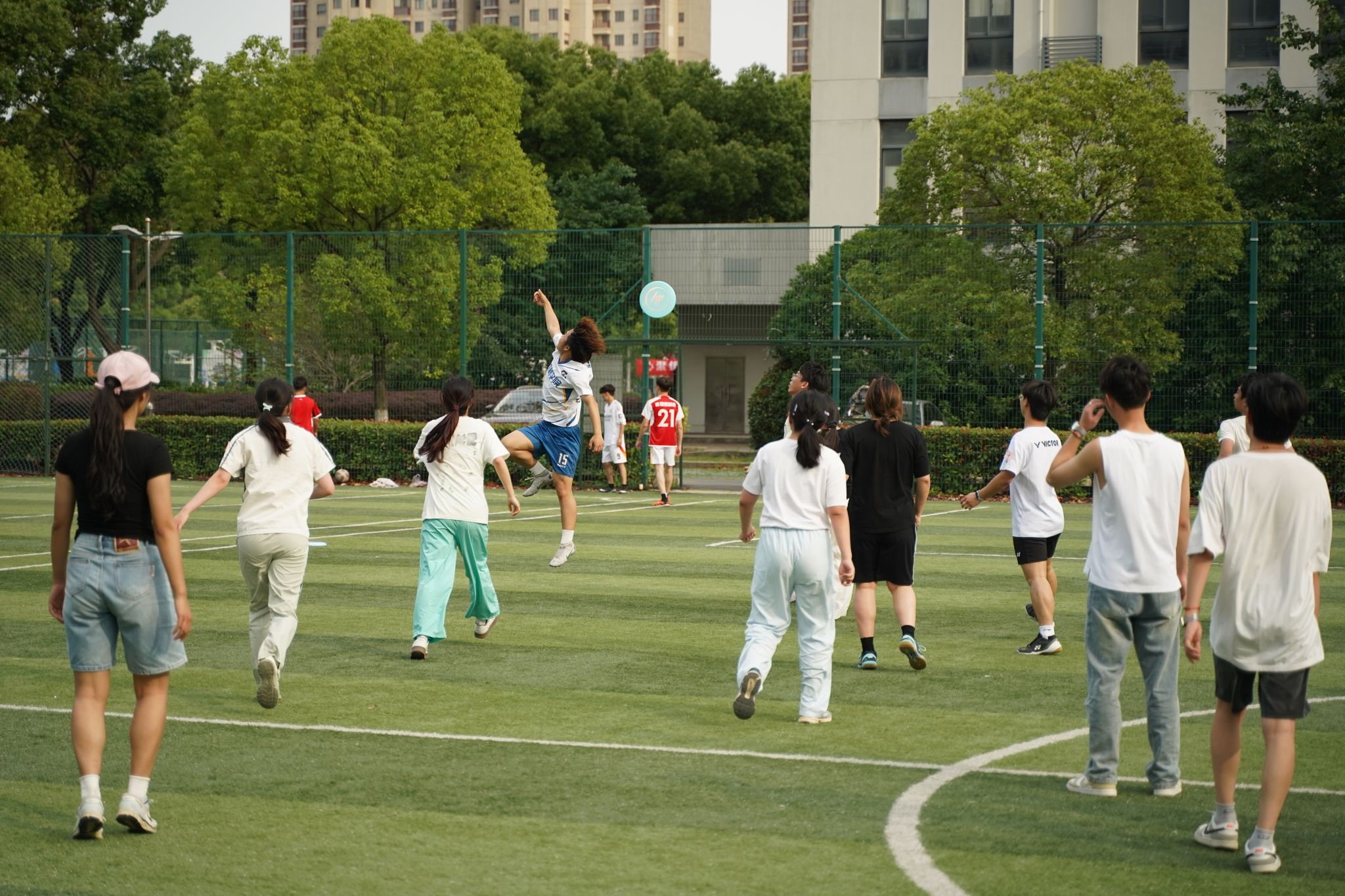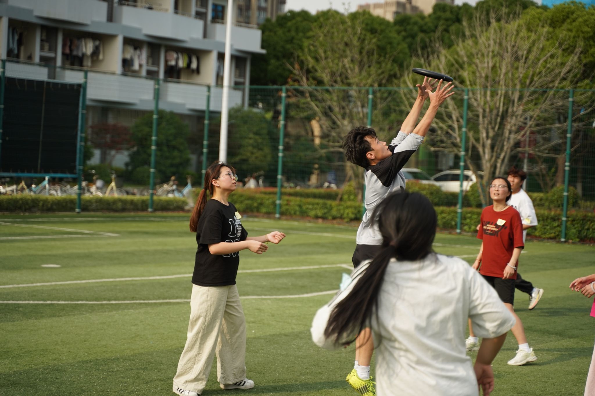 飞盘舞动青春,正念治愈心灵。5月27日下午,牡丹园前足球场化作欢乐的海洋,由学校心理健康中心与财经学院联合举办的“正念抛物线”趣味飞盘大赛火热开赛。来自11个院系的近100名同学在运动中体验正念专注的魔力和团队协作的魅力,用别开生面的方式践行"体疗心"的健康理念。