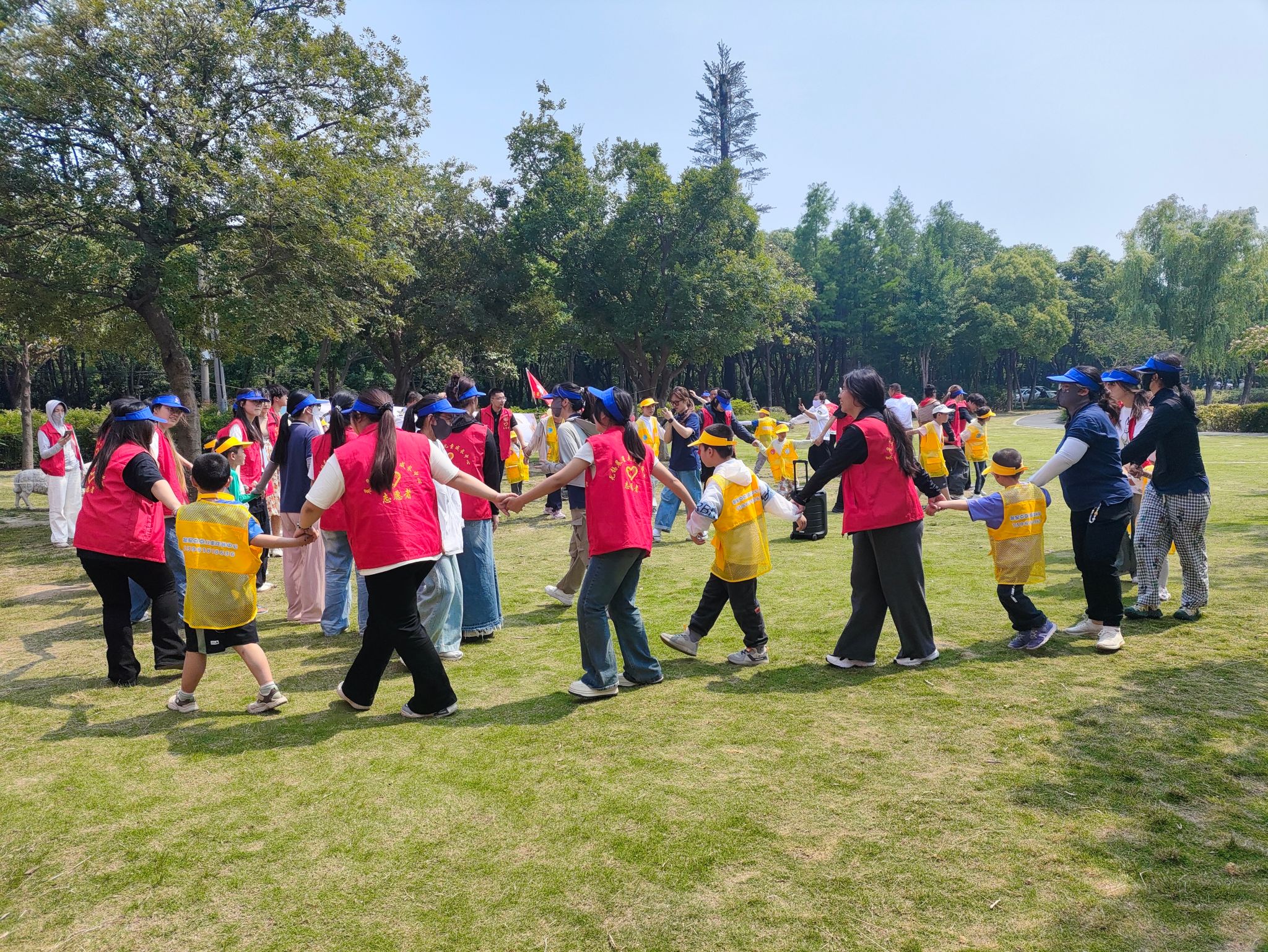 在“文明小乘客”的公交车体验环节,志愿者们以高度的责任感,为“星星的孩子”详细讲解乘车安全知识、示范安全带使用方法,并全程守护在车门、台阶等位置,确保每一位“小乘客”安全、有序、愉快地完成人生第一次“公交之旅”。到达贡湖湾湿地公园后,户外学堂活动正式拉开帷幕。志愿者们大手牵小手,一起参加“团结力量大”趣味拔河比赛。他们既是孩子们的“安全卫士”,又是“最强啦啦队”——有的在侧面严密防护,有的用洪亮的加油声点燃全场热情。在“灵动指尖”拍气球和“七彩童梦”水彩喷绘环节,志愿者们仔细为孩子们穿戴护具,协助调色、换瓶、耐心地为孩子们加油鼓掌。一个个毫无保留的拥抱,一双双充满信任伸出的小手,都是最志愿者们倾情付出的最好回馈。他们的勇气、无穷的活力,如同一股清泉,洗涤了志愿者们的疲惫,也让志愿者们重拾久违的童真与快乐。