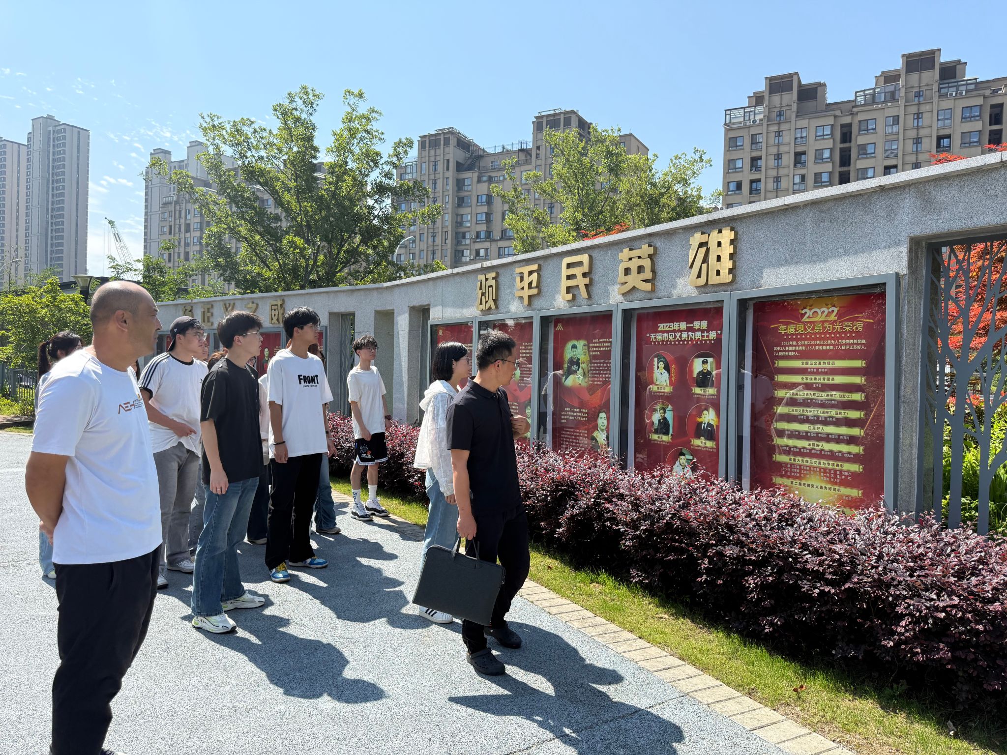为深化党建引领,弘扬正气精神,6月5日,体育部党总支群体竞赛教研室党支部与机械工程学院学生第一党支部的师生党员共赴无锡见义勇为主题公园,开展“党建+实践”学习活动。