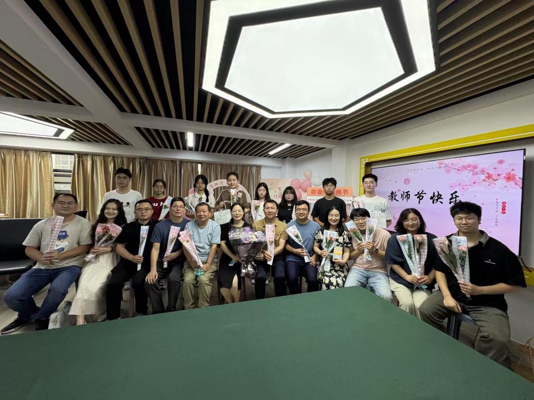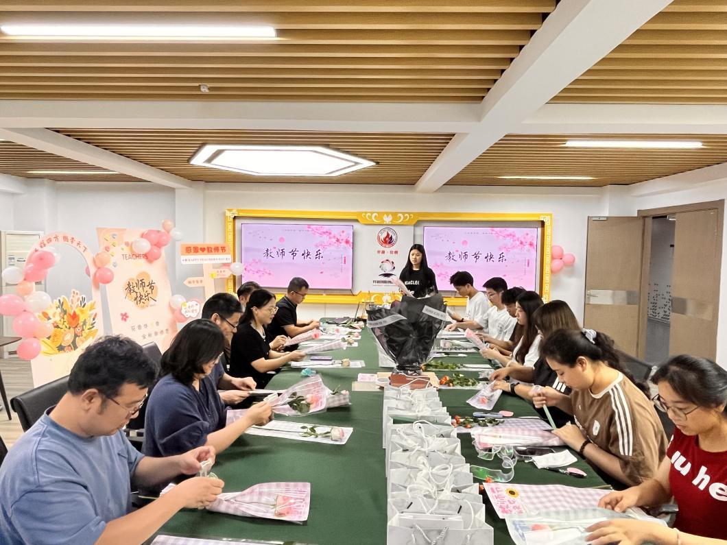 9月10日,在第41个教师节到来之际,双创学院在学院302会议室举办“盲盒传心意 桃李谢师恩”教师节活动。活动以花艺创作与盲盒互赠为核心形式,在温馨融洽的互动氛围中传递真挚情感,为辛勤耕耘的教师们送上一份兼具创意与心意的节日祝福。