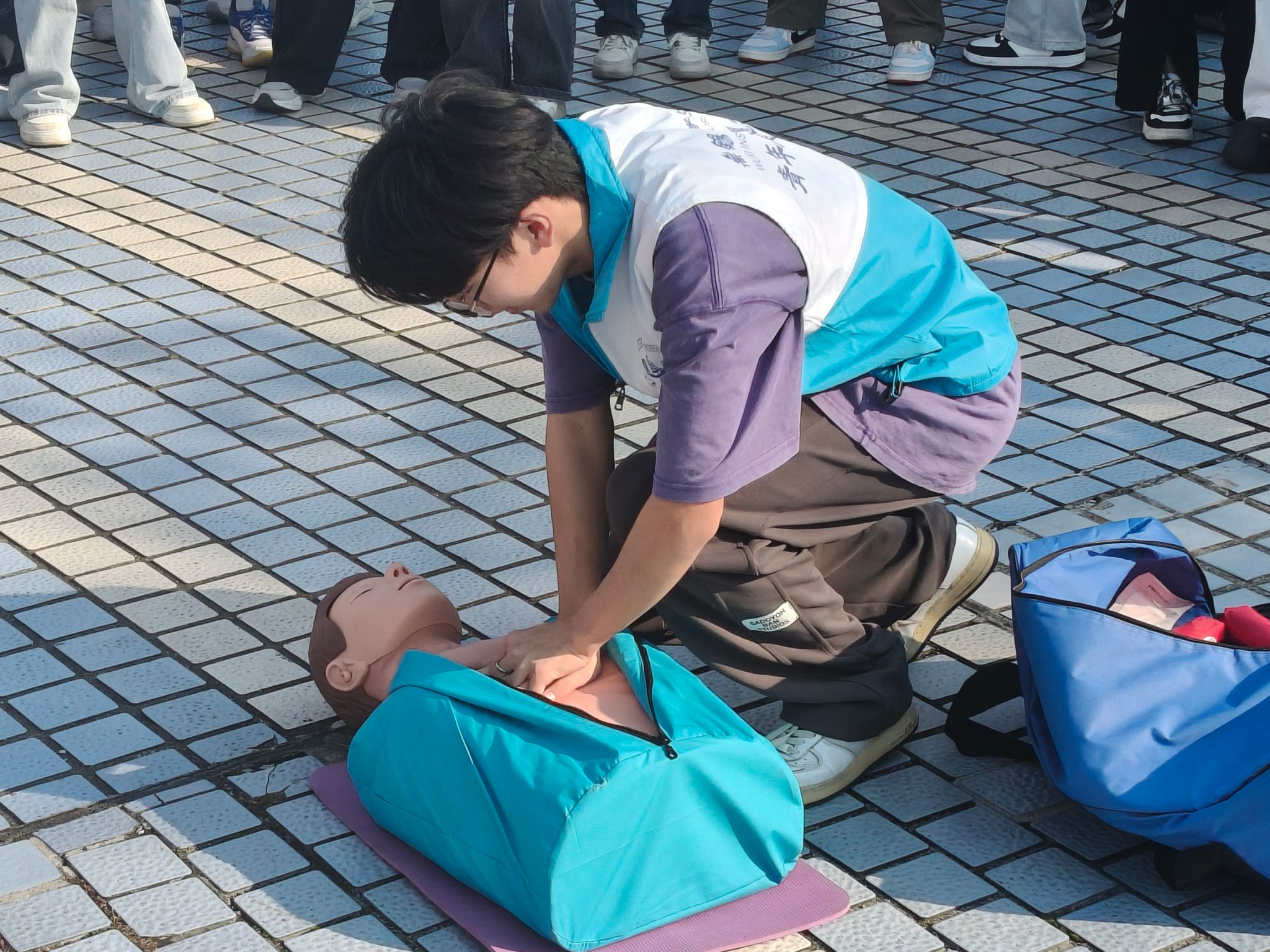 活动伊始,急救知识普及环节率先拉开序幕。考虑到后续巡河与水质监测需在水边开展,志愿者中的急救科普员结合户外水边场景的安全风险,以“理论讲解+实操演示”的方式,向全体志愿者重点普及落水急救、心肺复苏(CPR)等实用技能。