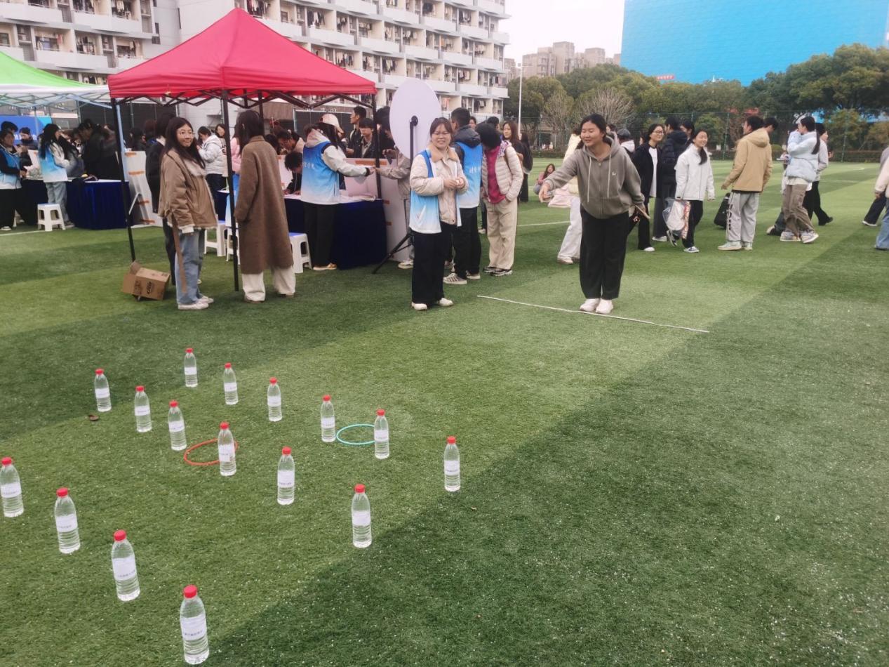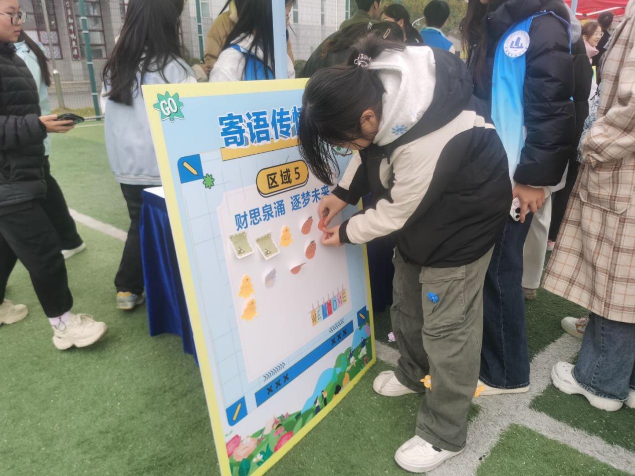 本次游园会以“普及金融知识、提升素养、防范风险”为核心目标,创新采用“游园集市+趣味互动”的形式,构建起“学—练 —赛—悟”一体化的金融知识传播体系。活动现场设置 “投壶射礼・金融常识大闯关”“转盘挑战・风险识别我最强”“套圈答题・理财思维巧培养”“寄语传情・逐梦金融写初心”等多个特色环节。每个环节均融入货币金融、征信管理、反电信诈骗、理性投资等专业知识点,学生通过答题通关即可获得闯关贴纸,累计贴纸数量可兑换对应礼品。活动现场秩序井然、气氛热烈,同学们在轻松愉悦的氛围中积极参与挑战,在沉浸式体验中深化对金融知识的理解,有效提升了金融风险防范意识与理性消费能力。