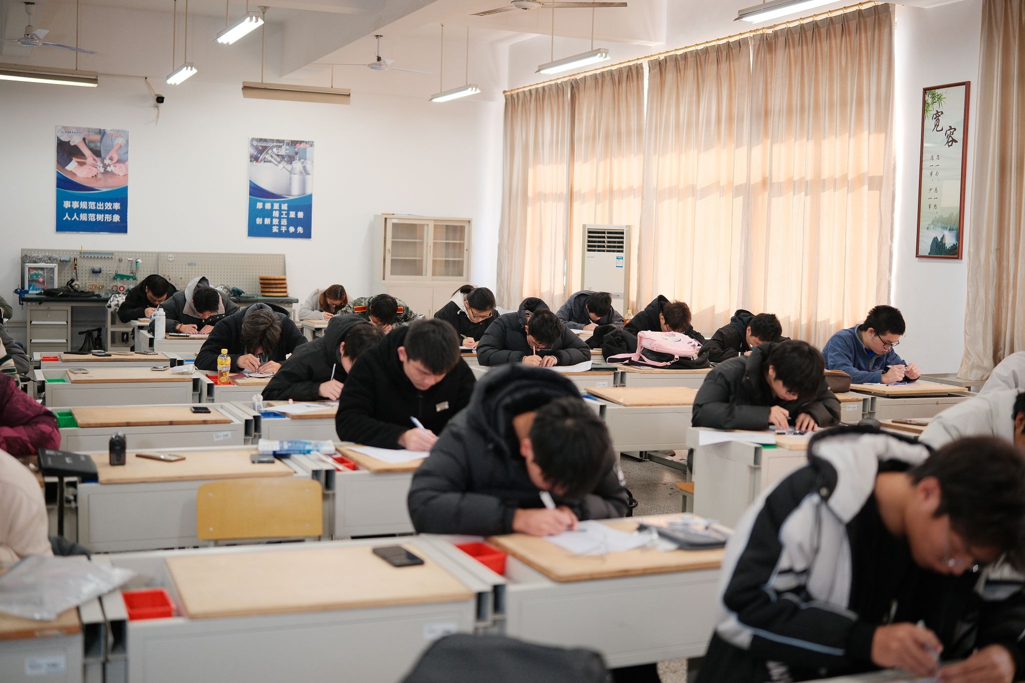 12月6日上午,机械制图技能大赛于在工业中心A-S505举行。作为工程界的“通用语言”,机械制图能力是工科学生的基本功。比赛分选择题与作图题两大模块,内容覆盖组合体三视图、图样画法及典型零部件图等核心知识,全面考察学生的识图、绘图与空间想象能力。赛场上,选手们凝神静气、运笔如飞,展现出扎实的专业基础与严谨的制图态度。