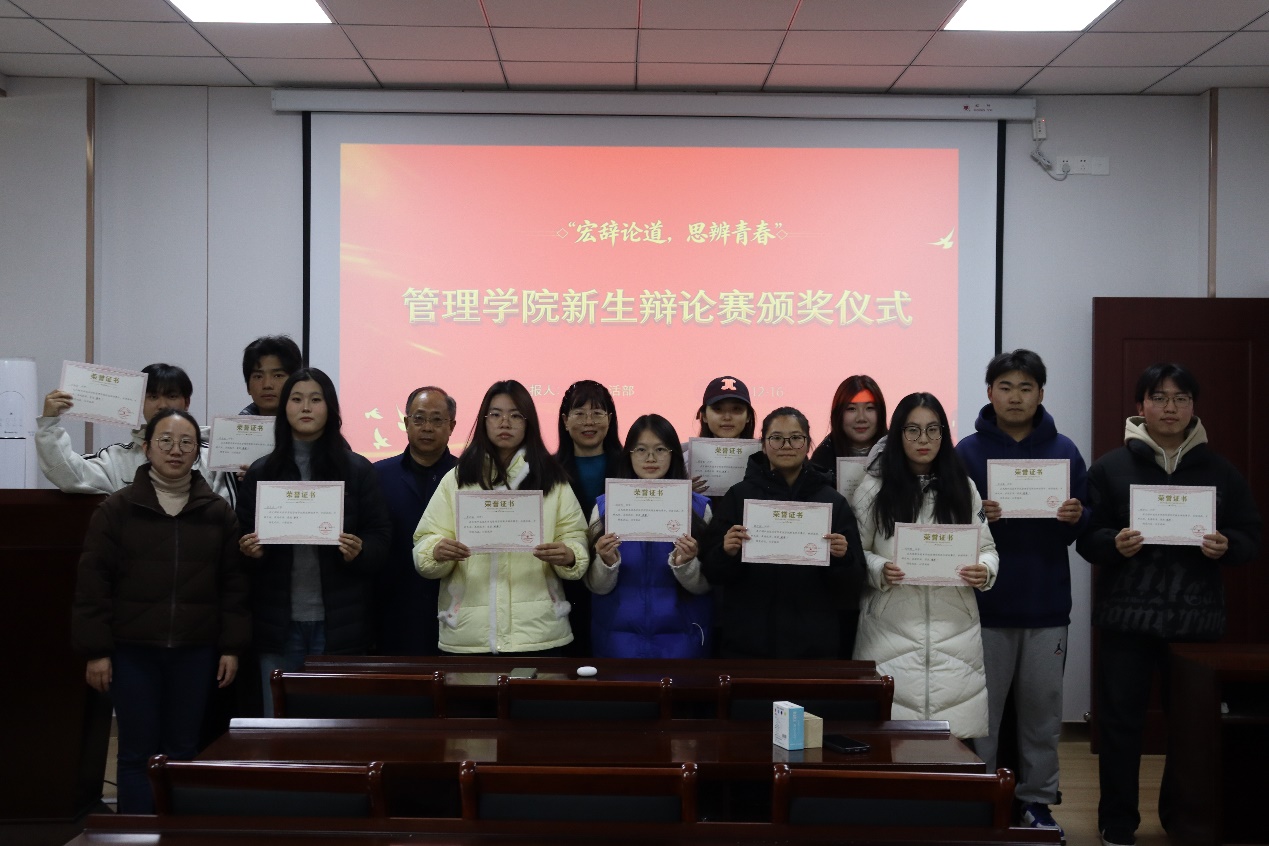 随后,到场老师为获奖队伍及“最佳辩手”颁发了证书。本届辩论赛的成功举办,为新生提供了展示自我、碰撞思想的平台,生动践行了管理学院“知行合一、经世致用”的育人理念,对于营造勤于思考、勇于表达的学风起到了积极的推动作用。