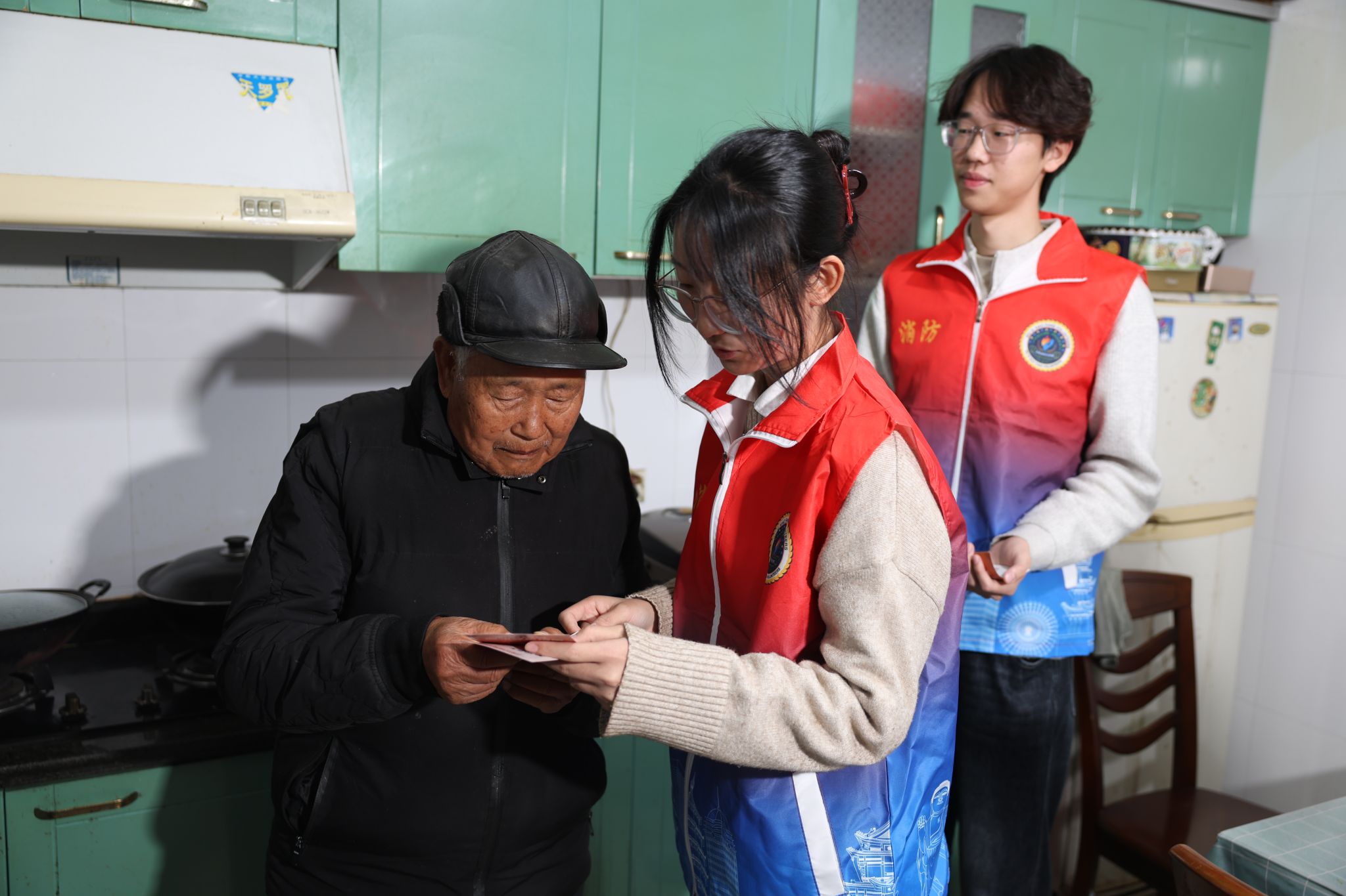 在党群联动实践环节,党员与社区老人结对互动,共同制作消防主题手工作品,在温馨交流中普及安全知识、拉近情感距离。党员们还分组组成“安全排查小分队”,在消防员的专业指导下,深入老人家中及社区公共区域,开展隐患排查与入户宣传,细致记录问题并及时反馈,切实为老年群体筑牢居家安全屏障。