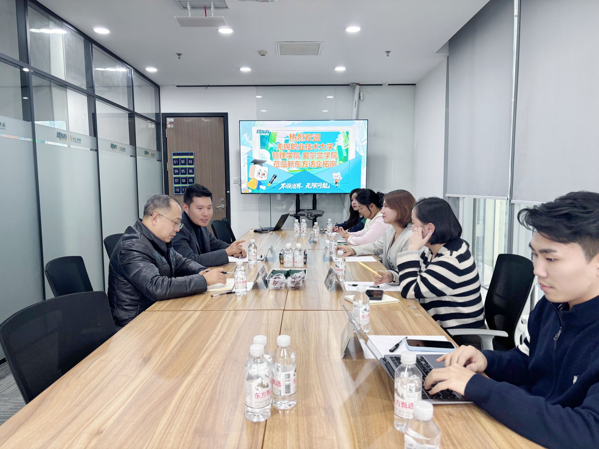 为深化校企合作、拓宽学生实习就业渠道,近日,管理学院与爱尔兰学院联合开展访企拓岗专项活动,赴无锡新东方学校与新东方培训部部长苏妍、出国部部长石莹等展开座谈,双方围绕教育行业人才需求对接、学生实习实践平台拓展等议题进行深入交流,共同探讨市场营销、电子商务等岗位合作,并关注学生国际化发展路径,为提升应用型人才培养质量注入新动力。