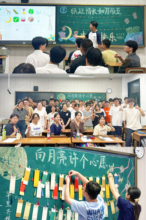 随后,集成电路学院辅导员和新生班主任走进班级,深入了解学生的学习状态和适应情况,并利用课余时间给同学们带来了一场趣味中秋活动,丰富了同学们的大学时光。传统节日凝结着中华民族的民族精神和文化情感,承载着中华民族的血脉和思想精华,此次中秋活动以学生喜爱的集体游戏融合中国传统中秋佳节元素,让每一位新生感受到“团圆”的欢乐与温暖。活动中,来自各地的同学倾情分享畅谈本地中秋习俗文化,并团结协作参与趣味游戏,展现“芯青年”朝气蓬勃、奋发有为的精神面貌,活动结束,同学们在便签纸上写下大学梦想,一张张青春的信笺承载着同学们对未来的美好愿景。