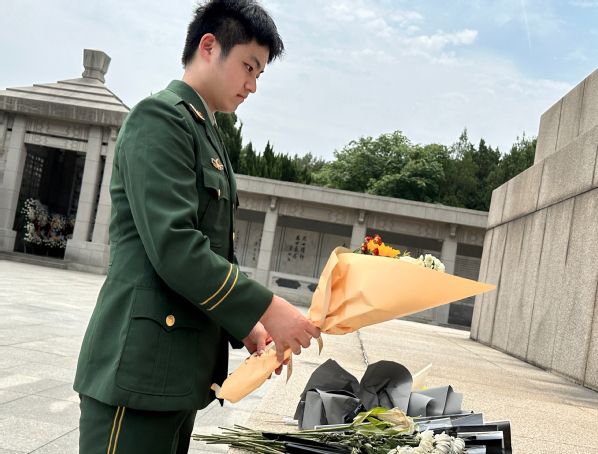 晨光初照的清晨,队员们怀着对革命先烈的崇敬之情,来到了淮海战役纪念馆。首先,队员们向庄严肃穆的淮海战役烈士纪念塔敬献了鲜花,并集体默哀,缅怀那些在解放战争中英勇献身的革命先烈,特别是在淮海战役中英勇奋战的将士们,以此纪念战役胜利75周年。队长马帅康带领队员敬读了烈士纪念塔碑文,并共同列队向革命先烈庄严敬礼,以挺拔的军姿向那些为人民解放事业献出宝贵生命的英雄烈士表达崇高敬意!