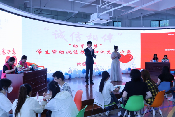 为认真贯彻落实党的二十大关于“完善覆盖全学段学生资助体系”的重要决策部署,深化资助育人工作,加强同学们对国家及学校资助政策的认知,增强当代大学生诚信意识和责任担当。6月18日晚,管理学院联合双创学院于产教一期,共同开展以“诚信相伴·助学筑梦”为主题的学生资助政策宣讲暨诚信教育知识竞赛活动。