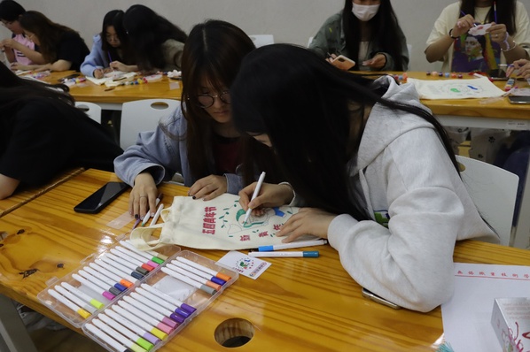 绘聚青春的力量,共画美好未来。通过“袋袋相传”帆布袋手绘活动,绘就青春梦想。活动现场,大家手执画笔,以白色帆布包为画板,充分发挥丰富的想象力和创造力,一笔一画,一色一调,为帆布包赋予了独一无二的灵魂,用实际行动彰显新时代风貌,尽显青年朝气活力。原本普通的白色帆布袋因大家独特的创意和灵巧的画笔变成了一幅幅艺术画。活动中,同学们不仅仅体会到了绘画带来的乐趣,也对五四精神有了新的感悟。