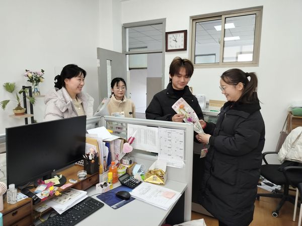 3月8日,财经学院开展“芳菲暖师心,巾帼共芳华”妇女节温情送花活动,学生们以贺卡为载体,寄情于手工花束,为全院女教师送上花朵与祝福,感恩老师们的无私奉献和谆谆教诲。收到鲜花的女教师们笑靥如花,倍感温馨,全院洋溢着浓浓的节日气氛。