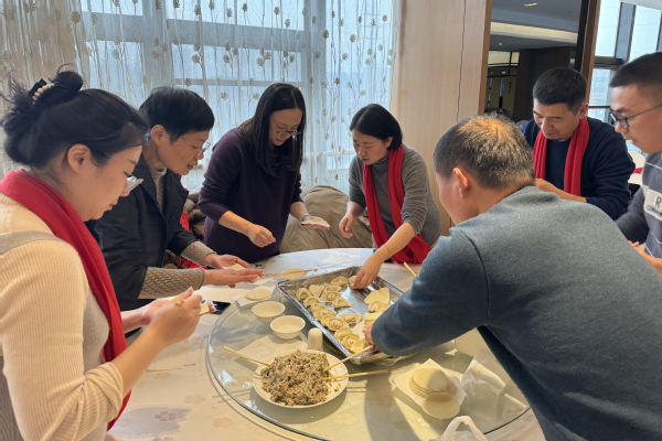 为营造温暖热烈的节日氛围,多位老师加入包饺子和馄饨的“队伍,一排排外形精巧的饺子和馄饨,或像元宝、或像月牙,现场一片欢声笑语,氛围温馨融洽。