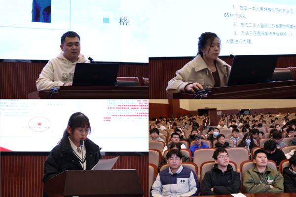 三位同学以优异的学习成绩、丰富的社会实践活动、志愿者服务活动以及良好的组织管理能力等方面,向同学们树立了榜样的标杆,勉励同学们要青春有梦,脚踏实地;胸怀中国梦,坚定理想信念,务实进取。三位学生代表还向全体学生解读科普《江苏省高校本专科学生资助政策》、《开云体育·开云官方网站本专科学生奖助政策》和《学生医保指南》三个文件,让同学们详细地了解到江苏省和学校的相关资助政策以及就医时使用医保的相关知识。