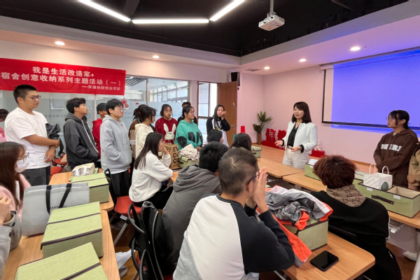 为进一步培育新时代大学生创新创业精神,传达积极健康的生活理念,11月7日,开源创新创业学院开展主题为“我是生活改造家+”一站式宿舍收纳活动。本次宿舍创意收纳讲座以优化寝室环境为重点,以树立正确的劳动观、人生观、价值观为导向,努力建设学生积极向上的精神风貌,形成安全、整洁、舒适的寝室环境,培养我校学生的实用生活技能,提升生活品质和审美视角,增强大学生活的归属感和幸福感。施红珍担任指导老师,以现场讲座、实地演练、现场成果评比多种形式、多角度向学生们展示和呈现宿舍空间优化和收纳整理的艺术。