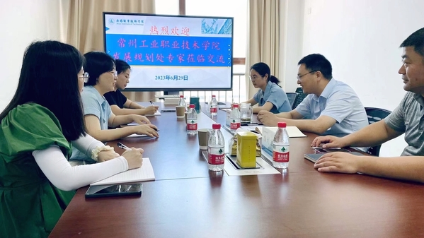 6月29日上午,常州工业职业技术学院发展规划处、高职教育研究所处长胡彩霞一行3人来我校开展交流研讨。