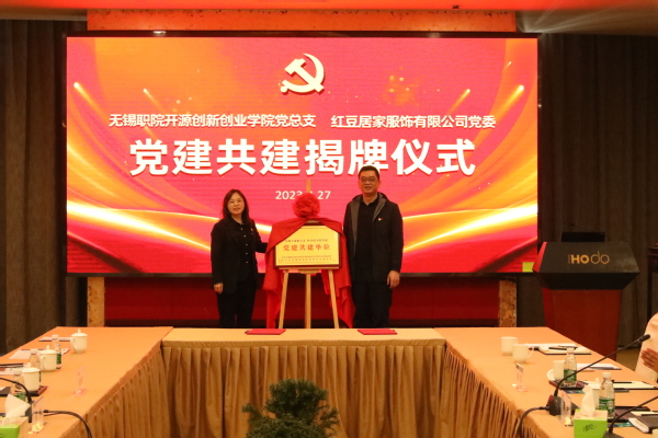 朱倩介绍了学校的发展历程、双创学院的人才培养理念、毕业生就业等情况,并代表学院党总支与红豆居家党委签订了党建共建协议、为党建共建揭牌。朱倩表示,希望双方以本次党建共建为契机,在项目申报、教材开发、实训基地建设等方面寻求新的合作。双创学院党总支副书记徐进结合红豆家居的发展战略,在产品设计、人工智能运用等方面给企业提供了中肯的建议。
