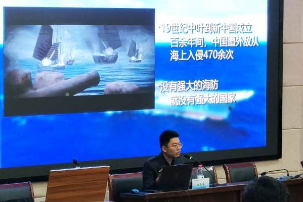 徐冬豪从海洋战略的视角出发,分析了海军建设的必要性与紧迫性,讲述了中国人民海军自诞生起所经历的极为曲折的发展历程和残酷的战争历练。经过74年的建设和发展,中国海军成功组建了以航空母舰为代表的水面舰艇部队,以核潜艇为首的潜艇部队和“听党指挥、能打胜仗、作风优良”的海军陆战队、岸防部队和航空兵。徐冬豪深情地说:“刘华清将军的航母梦已经实现了,中国建设世界一流的现代化海军的目标也必将实现!”通过讲授,双创学子进一步认清了国际国内发展形势以及中国建设强大国防的重要意义,进一步增强了爱国之情,筑牢了安全意识。徐进在总结时指出,国防安全是国家生存与发展的安全保障,国防教育是全民的教育,双创学子应传承红色基因、汇聚前行力量,为国家现代化建设与发展做出贡献。