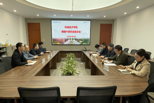 4月24日,机械技术学院举行援疆教师欢送座谈会,为即将启程奔赴新疆伊犁丝路职业技术学院的援疆教师王振宇、薛庆红送行,副校长奚茂龙出席座谈会并讲话,机械学院领导班子成员、数控系主任等参加了座谈。