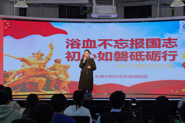 随后,无锡学院红岩实践调研团宣讲员王奎同学,分别从了解援朝英雄,感受精神传承;致敬援越英雄,传承民族精神;树立国家安全观,保护祖国安全三个方面,向师生们介绍了抗美援朝战场、抗美援越战场以及当前国际、国内安全形势。王奎表示作为一名曾在西藏服役的退役大学生,深刻感受着国家安全的重要性。他号召双创学子们,作为新时代青年,必要有所作为,不负青春,不负人民。红岩实践调研团的分享获得了经久不息地掌声。