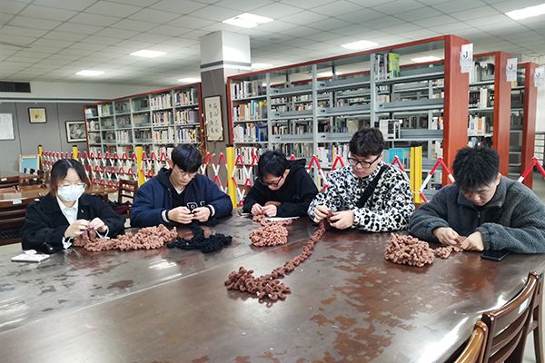 活动由图书馆和心理中心老师指导,现场150余名学生参与编织活动,同学们制作热情高涨,活动持续近4个小时。