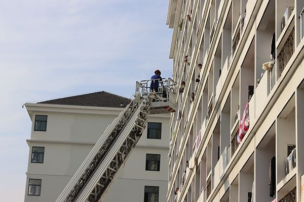 11月15日,我校高层宿舍楼火灾应急疏散及救援演练在桃李园、牡丹园等处开展,校保卫处与无锡市滨湖区消防救援大队指战员联合组织,学生处、后勤管理处、学生消防志愿者、驻校保安项目部配合参与了此次演练。区消防大队朱明参谋对本次演练作了现场点评,要求学生熟练掌握火场逃生及火灾自救能力。
