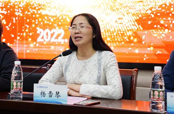 杨雪琴在讲话中指出,校友是学校发展的宝贵资源、是学校办学成果的亮丽名片。她介绍了我校今年来各项事业的蓬勃发展和未来五年的发展机遇,并对校友提出殷切希望:“以今天的聘任仪式为契机,认真履行职责,发挥岗位优势和专业特长,做好大学生前行路上的标杆和榜样,创新育人工作模式,优化校企合作结对共建机制,为学校人才培养工作贡献智慧和力量”。