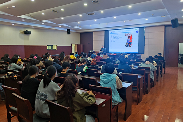 耿振民介绍了自身和外在两个因素与职业发展的关系,通过有趣的小问题帮助同学们从自身性格、个人兴趣、个人价值观、知识与技能四个方面认识自己是什么类型人,有什么性格特点,怎样发挥性格优势,特别是个人的兴趣对职业类型及发展的重要性。家庭、大学专业、职业发展前景等外在因素也可能会影响日后的职业选择,对此耿振民强调同学们一定要早早地做好职业规划。