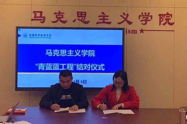 为帮助新教师更好更快成长,马克思主义学院建立导师制,为每位新教师指定一位有较长工作经历、教学经验丰富的教师作为指导老师,一对一指点。在前期,指导教师已开展了带领新教师熟悉教学设施、了解教学运行流程、指导教案撰写、辅导在线教学等工作。本次培训会上,新老教师举行“青蓝蓝工程”结对签字仪式。指导教师对新教师表达了殷切期望,在工作方面提出了具体要求,新教师表示要不辜负学校的期待,认真工作,努力奋斗。