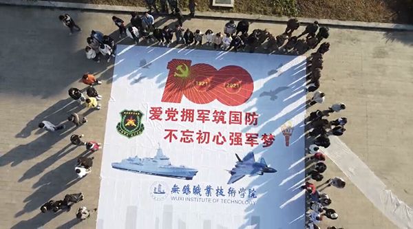 新思想青年学社为大家介绍了党指挥枪的历次经典战役,回顾了人民军队在党的旗帜下前进的光辉历程;橄榄绿军事爱好者协会为大家科普枪械、单兵携行具等军事装备的相关知识,介绍了我国国防取得的巨大成就。参与活动的同学们一起用颜料共绘蓝图,完成百人手绘,感悟“爱党拥军筑国防,不忘初心强军梦”的豪情壮志。本次活动还邀请了校内其他学生社团和其他高职院校的军协参加。